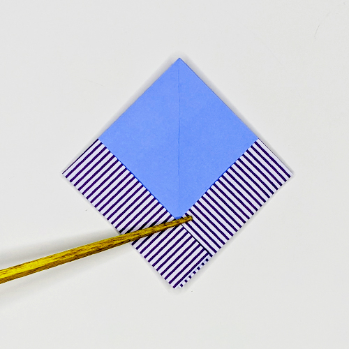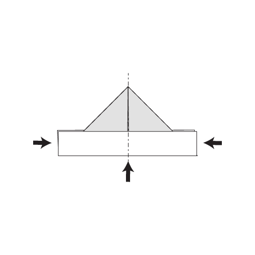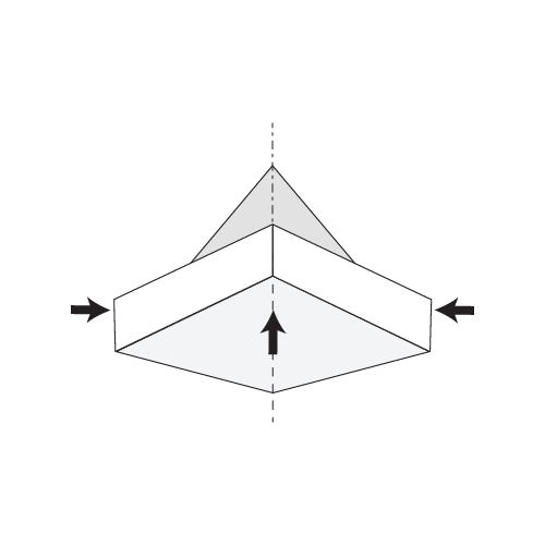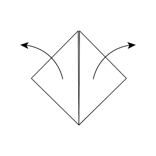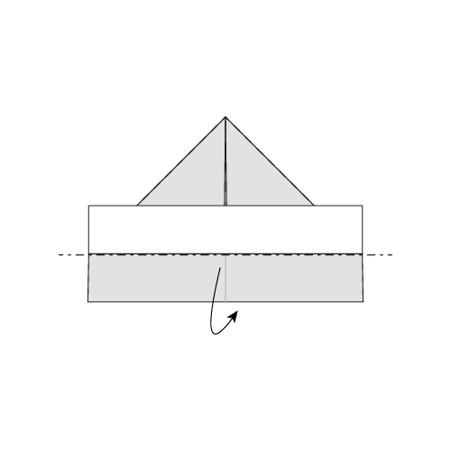 Поднимите верхний слой бумаги вверх по линии сгиба, обозначенной пунктиром, и повторите то же самое сзади.