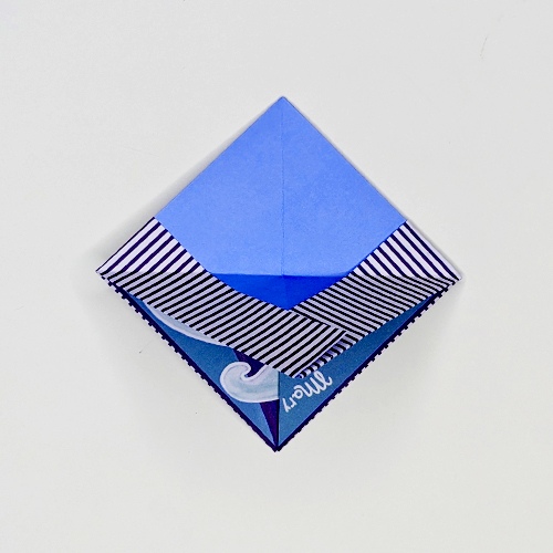 Заправьте правую часть бумаги под левую с обеих сторон, расплющивая модель.