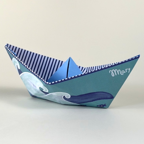 Ваш традиционный оригами-кораблик из бумаги завершен.