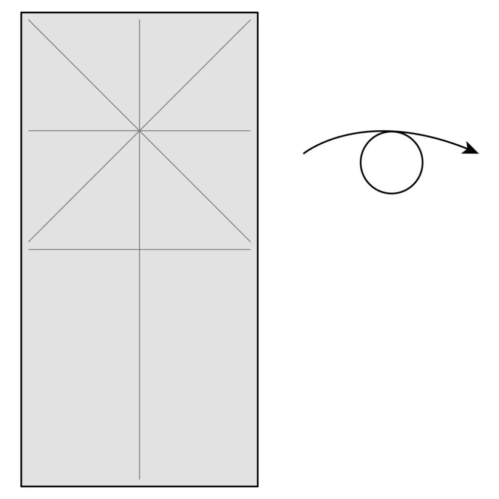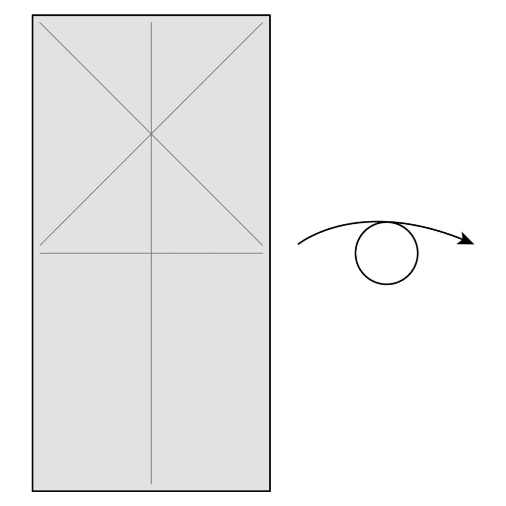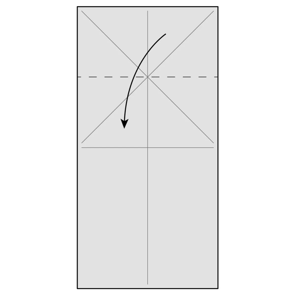 Сложите бумагу вниз по горизонтальной пунктирной линии. Хорошо прогладьте сгиб и разверните.