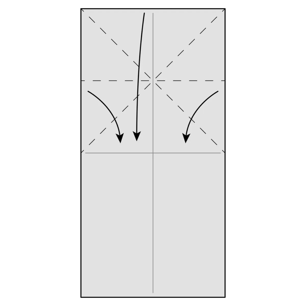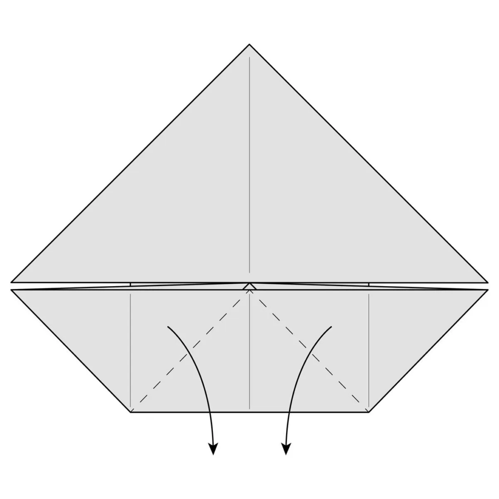 Сложите два уголка бумаги с каждой стороны вниз по пунктирным линиям.