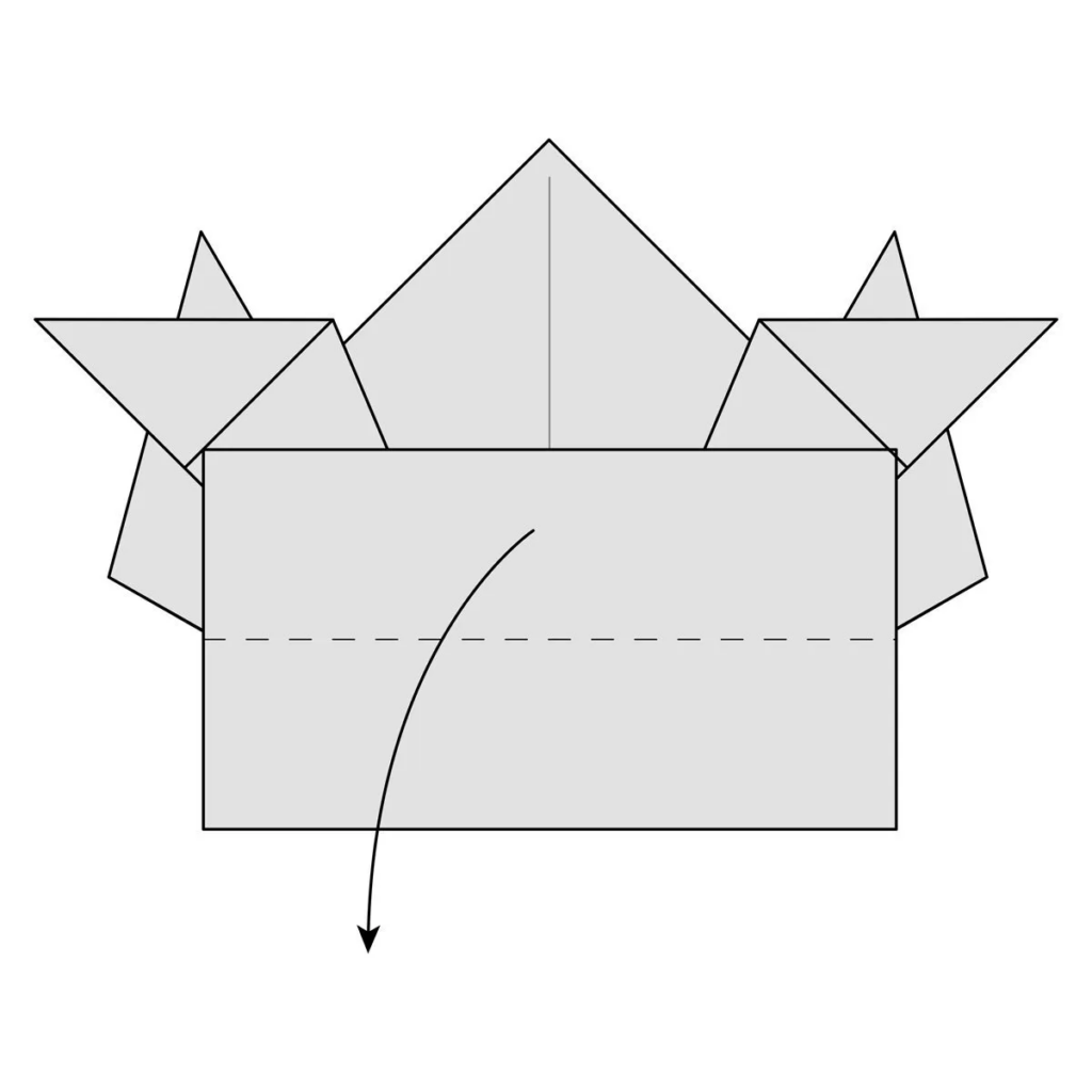 Сложите нижнюю часть бумаги вверх по пунктирной линии.