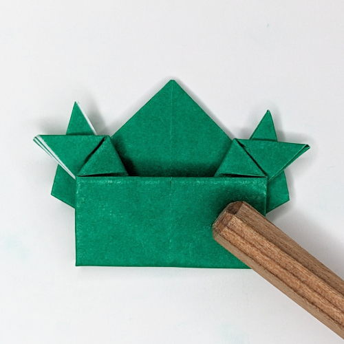 В процессе складывания бумага станет довольно плотной, особенно ближе к концу. Не переживайте, если ваши сгибы окажутся не совсем идеальными. Лягушка всё равно будет выглядеть отлично и сможет прыгать.