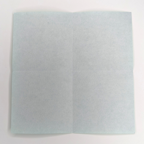 Возьмите квадратный лист бумаги белой стороной вверх. Сложите его пополам по горизонтали, а затем разверните.
